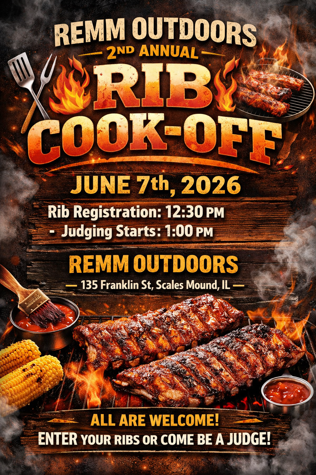 Get ready to fire up your appetite! Remm Outdoors is hosting their 2nd Annual Rib Cook-Off. You won't want to miss it! Whether you think your BBQ ribs are the best in the county or you just love sinking your teeth into smoky, fall-off-the-bone goodness, this event has a spot for you.